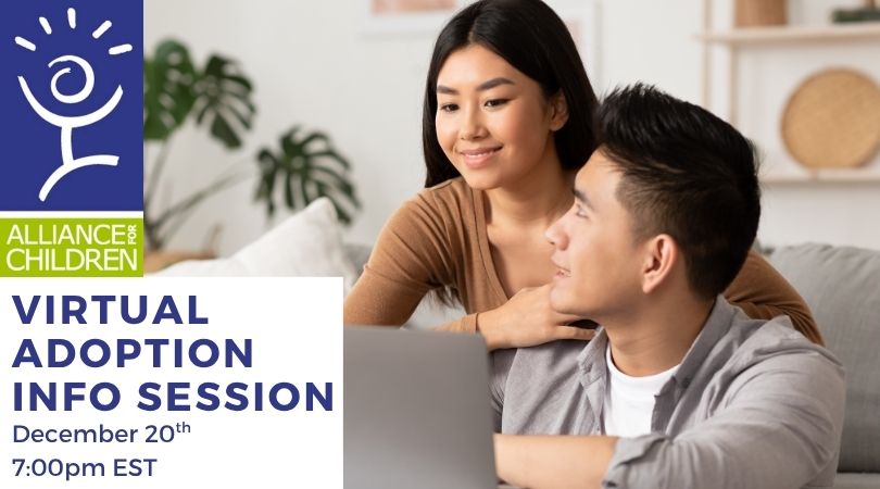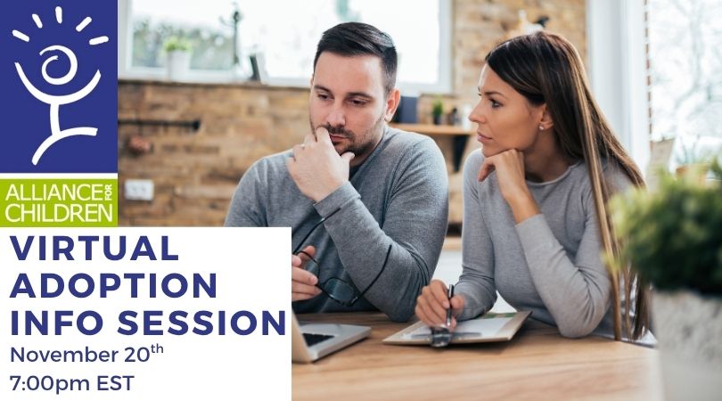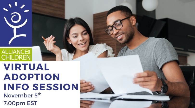 Alliance for Children will be holding a virtual information session for Connecticut families interested in adoption. Join us to learn more about our adoption services, including the application process, home study, and our domestic and international adoption programs. The meeting is FREE, but you will need to register to attend. It will take place on November 6th, at 7:00 PM EST.
