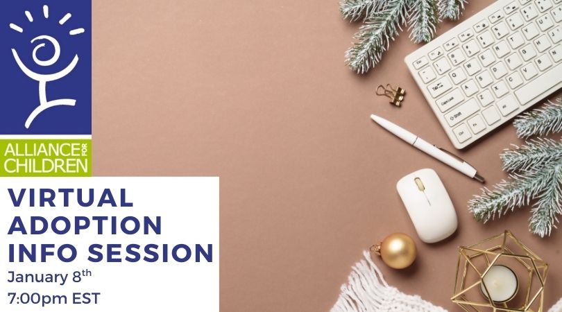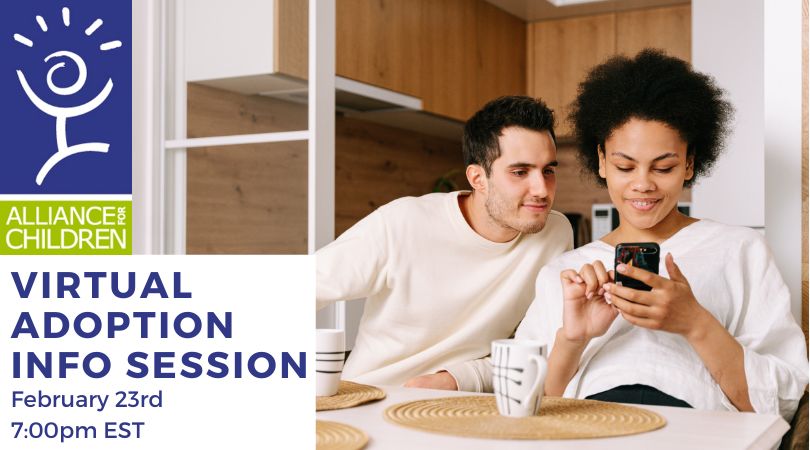 Alliance for Children will be holding a virtual information session for families interested in adoption. Join us to learn more about our adoption services, including the application process, home study, and our domestic and international adoption programs. The meeting is FREE, but you will need to register to attend. It will take place on February 23rd, at 7:00 PM EST.